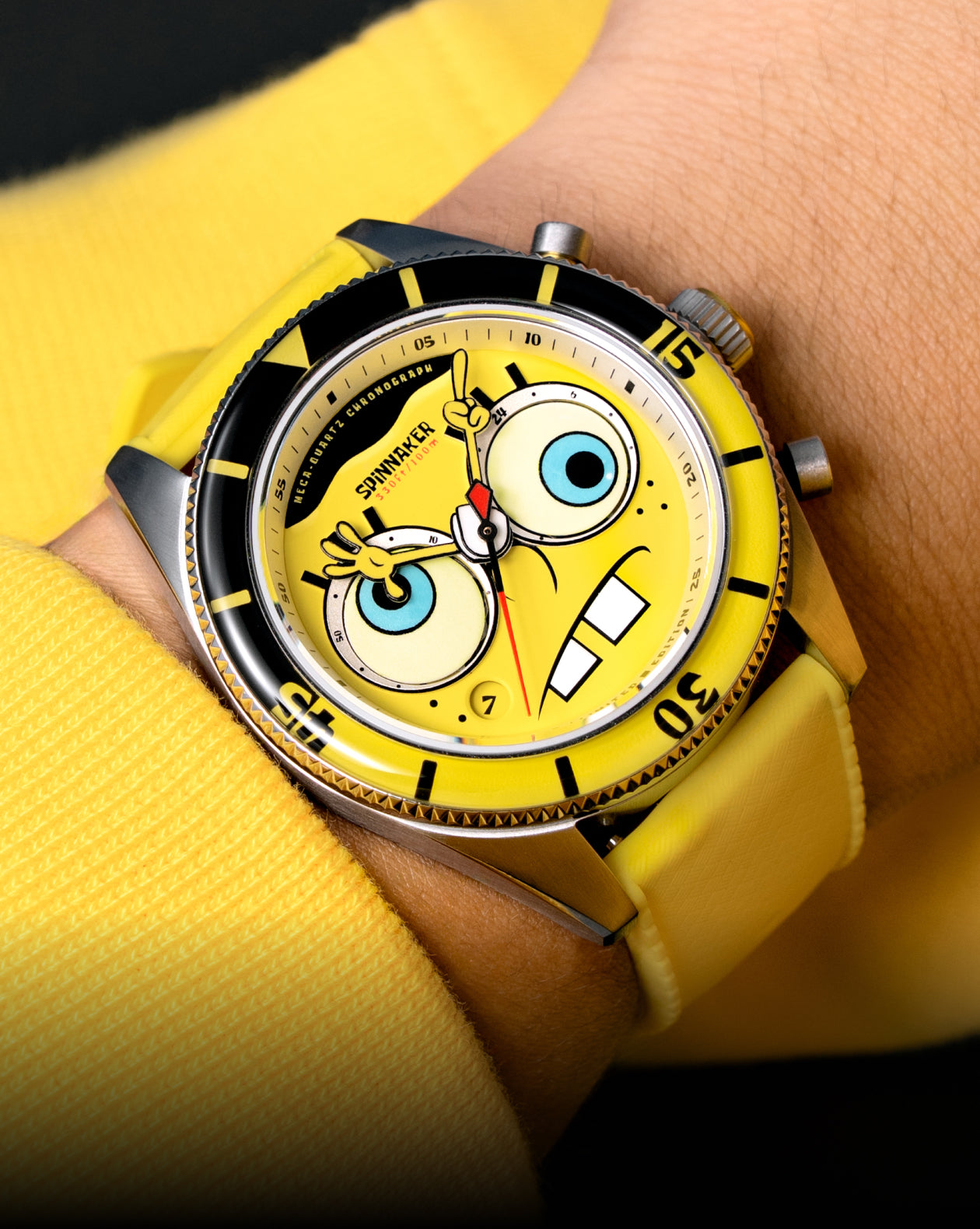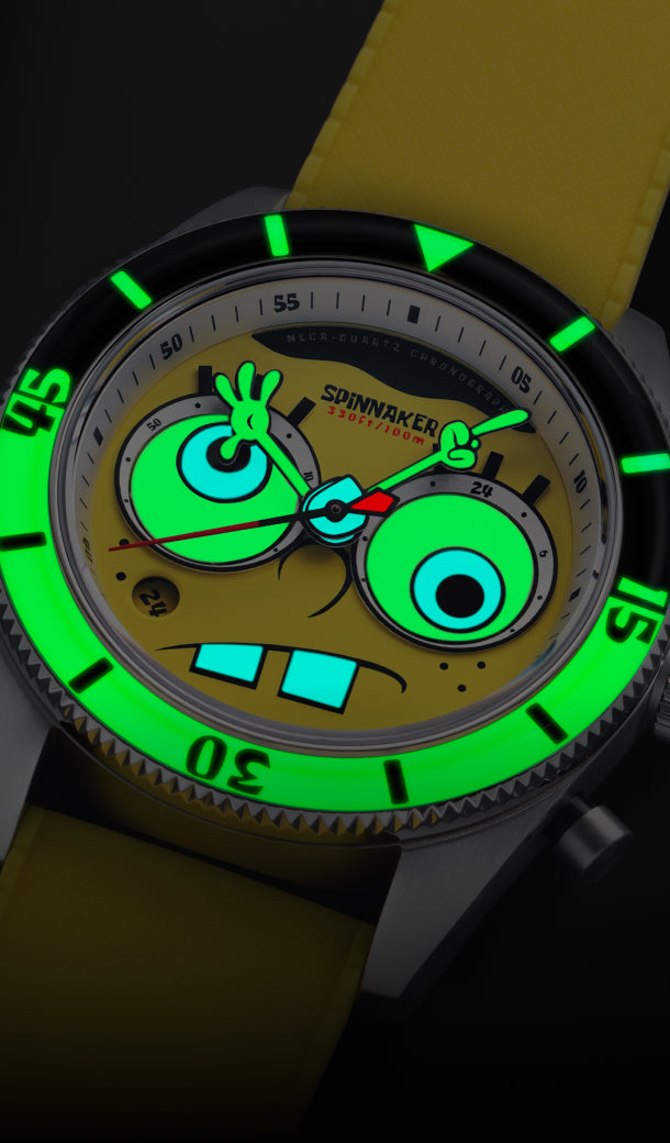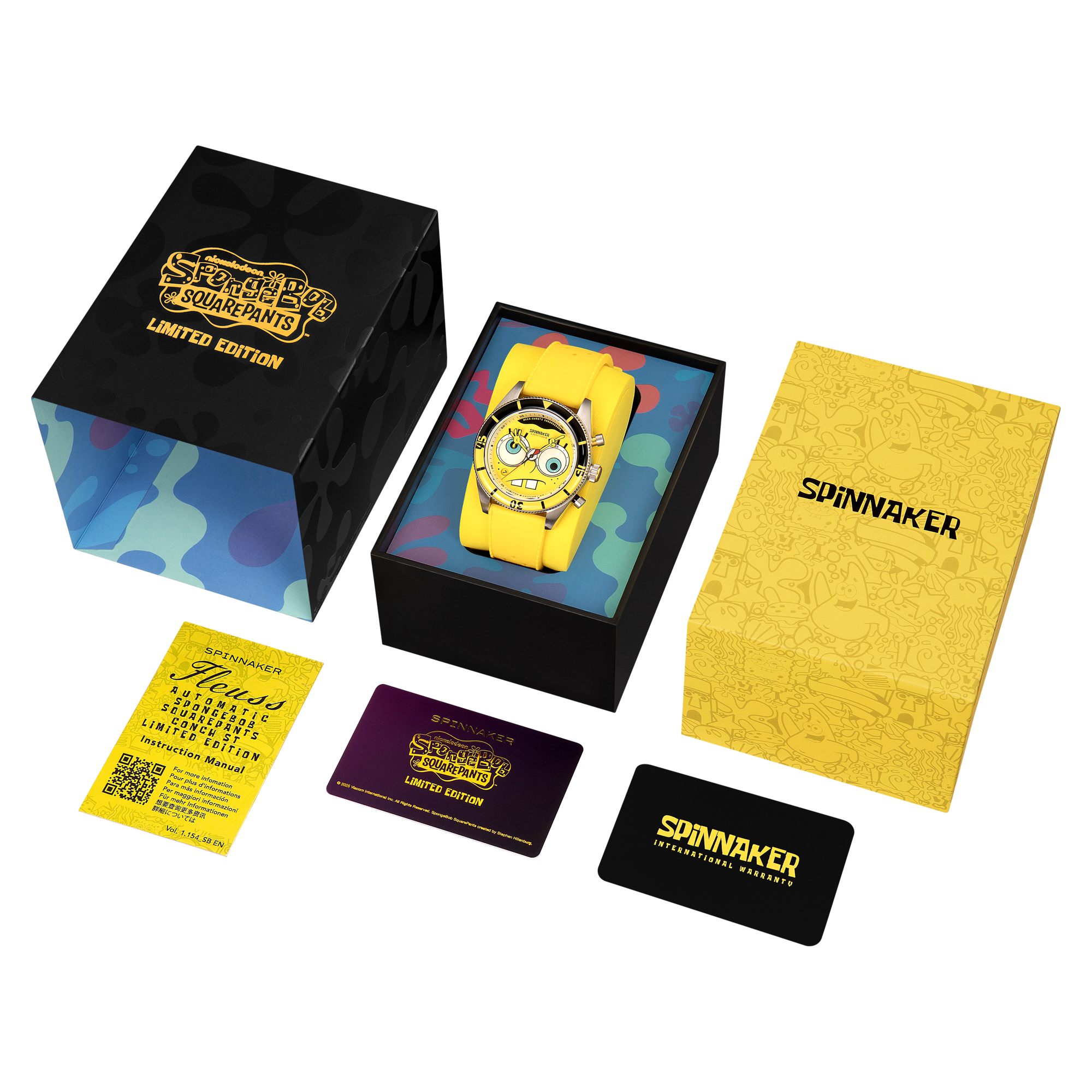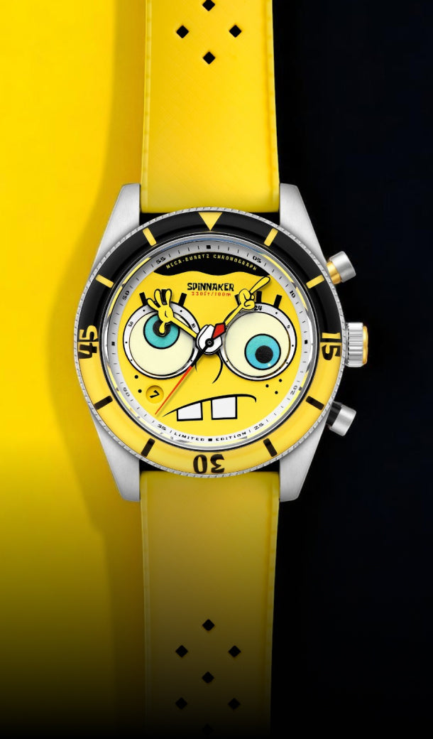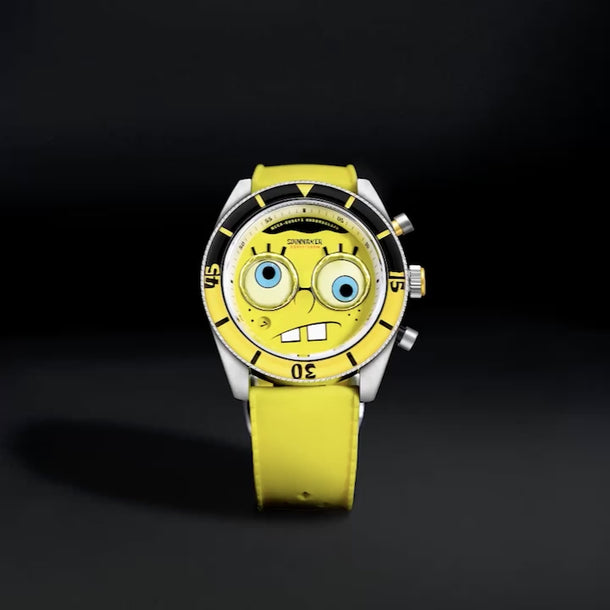 Spinnaker y Nickelodeon se unen una vez más para dar paso a la siguiente evolución en colaboraciones de relojes con personajes. Este reloj atrevido y lleno de diversión presenta una esfera 3D de múltiples capas, donde los ojos de Bob Esponja se convierten en subesferas animadas que cambian de expresión con el paso del tiempo.